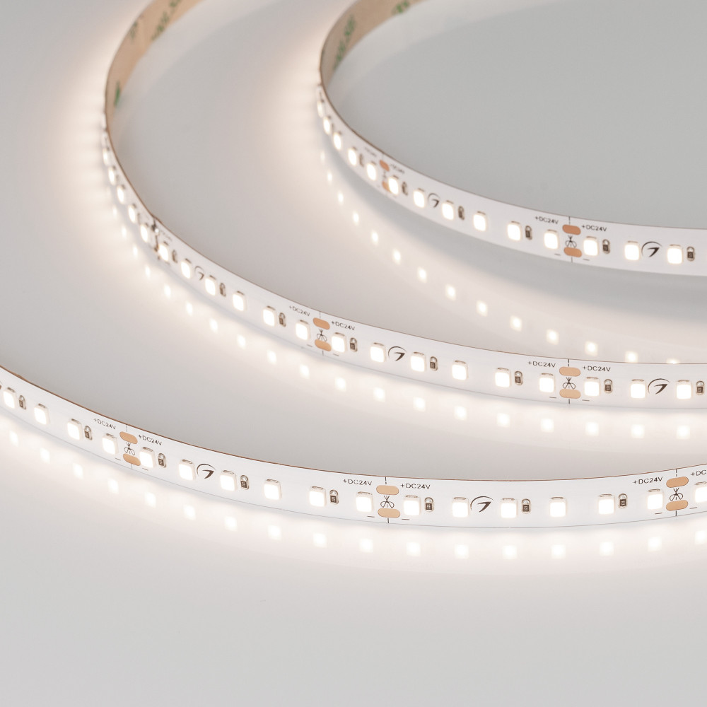 Гибкая лента открытая повышенной прочности TWIST. Светодиоды 2835, 120 шт/м ( 600 шт на 5 м), белая плата, ширина 10 мм, скотч 3M. Цвет ТЕПЛЫЙ 3500 K , цветопередача CRI >90 , угол 120°. Питание 24V, мощность 10 Вт/м (50 Вт на 5 м). Размеры 5000x10x1.5 мм