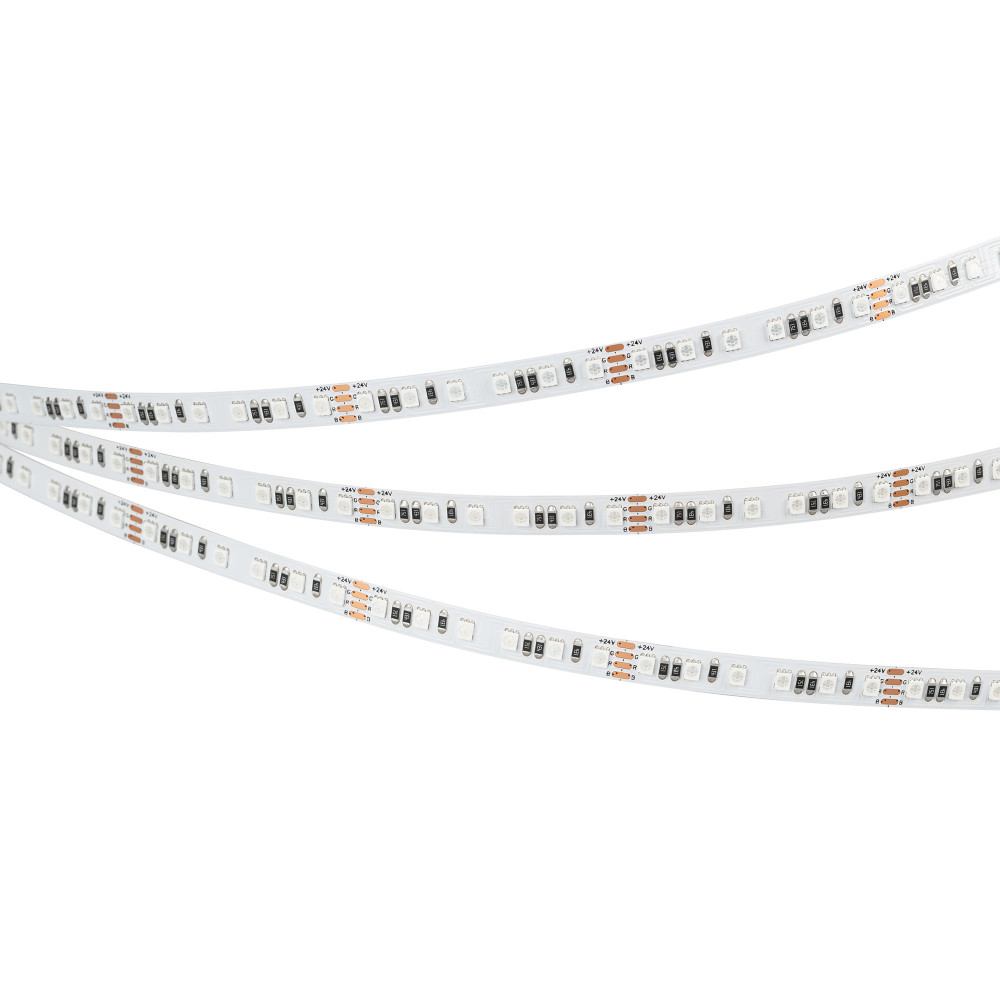 Светодиодная лента RT серии A120, открытая IP20. Светодиоды SMD 2835, 120 шт/м (600шт на 5м), белая плата, скотч 3М. Цвет RGB, угол 120°. Питание 24 В, мощность 12 Вт/м (60 Вт на 5 м). Размеры 5000x8x1.5 мм. Мин. отрезок 50 мм, 6 светодиодов. Цена за 1 м.