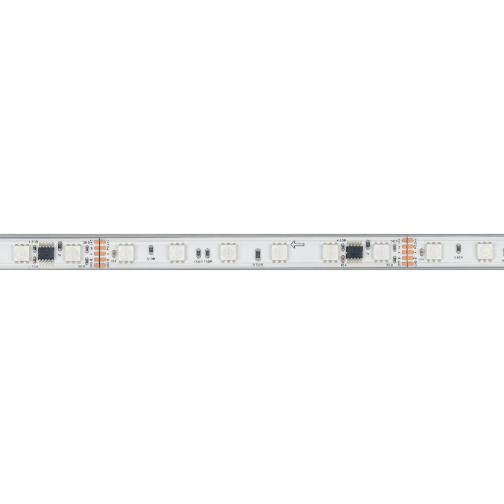 Лента герметичная DMX-PS-B60-12mm 24V RGB-PX6 (14 W/m, IP67, 5060, 5m) 039182, Светодиодная лента DMX-B60, герметичная IP67 (PS - силиконовая экструзия), с микросхемой GS8516. Светодиоды 5060, 60 шт/м (1 pixel = 6 LED), белая плата, скотч 3М. Цвет RGB, угол 120°. Питание 24 В, мощность 14 Вт/м (70 Вт на 5 м). Размеры 5000x12x5 мм. М