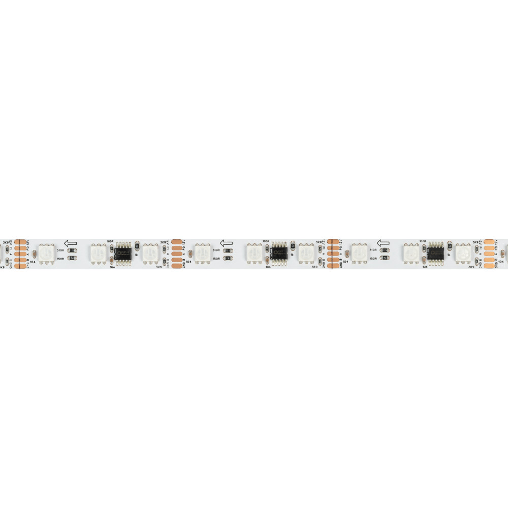Лента DMX-B60-10mm 12V RGB-PX3 (14 W/m, IP20, 5060, 5m) 039174, Светодиодная лента DMX-B60, открытая IP20, с микросхемой GS8516. Светодиоды 5060, 60 шт/м (1 pixel = 3 LED), белая плата, скотч 3М. Цвет RGB, угол 120°. Питание 12 В, мощность 14 Вт/м (70 Вт на 5 м). Размеры 5000x10x2.2 мм. Мин. отрезок 50 мм, 3 светодиод