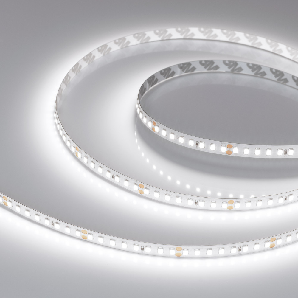 Светодиодная гибкая лента серии UL-A160. Светодиоды 2835, 160 шт/м (800 шт на 5 м), белая плата, ширина 8 мм, скотч 3M. Цвет БЕЛЫЙ 6000 K, цветопередача CRI>90, угол 120°. Питание 24V, мощность 12 Вт/м (60 Вт на 5 м). Размеры 5000x8x1.5 мм. Мин. отрезок 5
