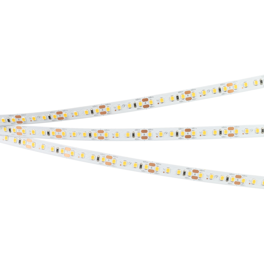 Лента RT-A120-10mm 48V Warm3000 (9.6 W/m, IP20, 2835, 30m) 032189, Светодиодная лента (монтажная бобина 30м) RT-A120, открытая, с подключением с одной стороны (без стабилизаторов). Светодиоды 2835, 120 шт/м (3600 шт на 30 м), белая плата, ширина 10 мм, скотч 3M. Цвет ТЕПЛЫЙ 3000 K, цветопередача CRI>85, угол 120°. Питани