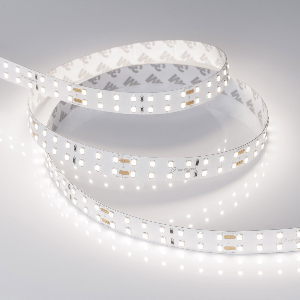 CRI98, гибкая лента LUX, 2 ряда светодиодов smd 5060, 120шт/м (600шт на 5м), белая плата 15мм, скотч 3М. Цвет ДНЕВНОЙ 3800-4200K. Питание 24V, мощность 28.8 Вт/м (144 Вт на 5м), угол 120°, очень высокая цветопередача CRI 95..98. Размеры 5000х15х2.2мм. Мин