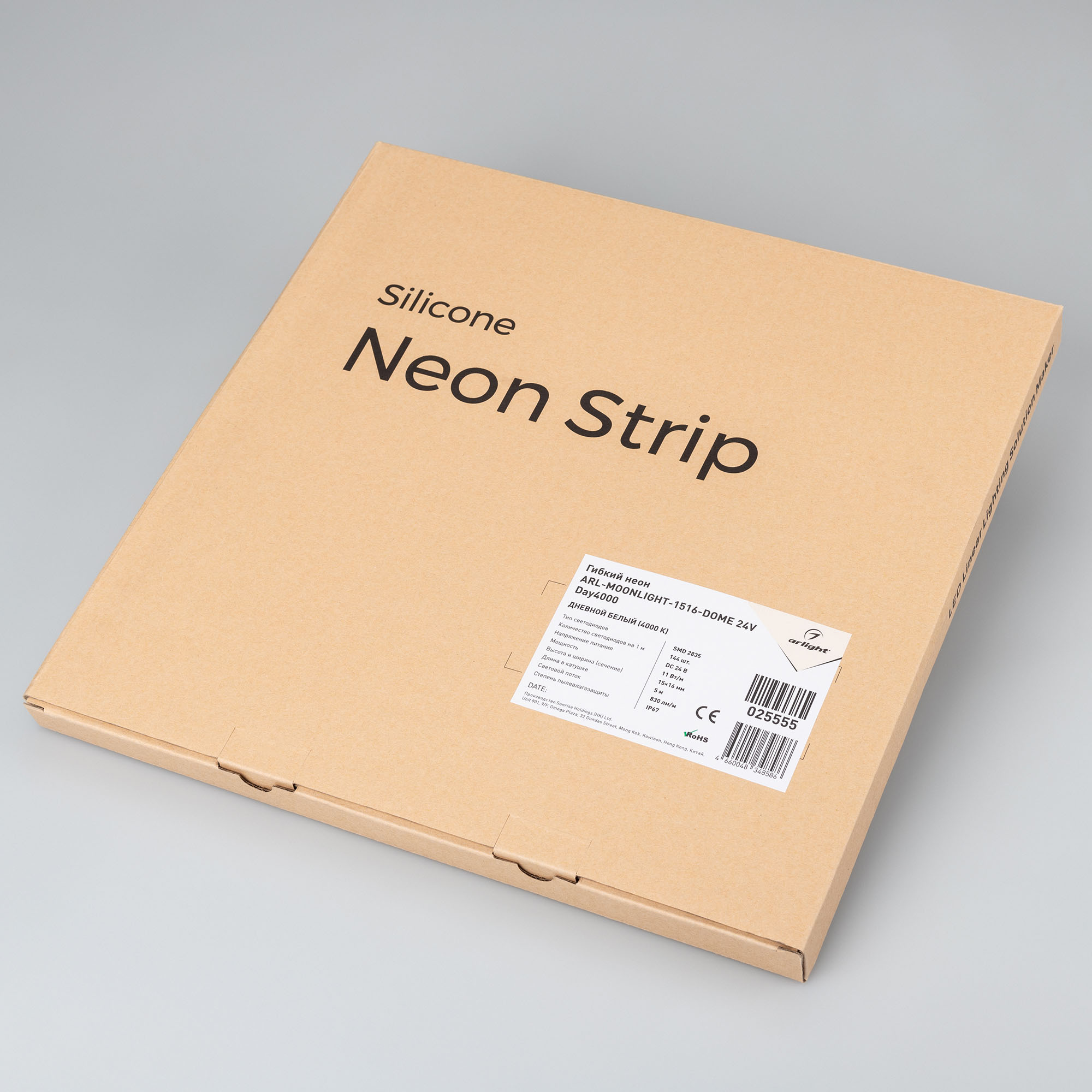 Гибкий неон ARL-MOONLIGHT-1516-DOME 24V Day 025555, Гибкая герметичная лента (неон серии MOONLIGHT), сечение 16х15 мм. Светодиоды SMD 2835 144 шт/м. Цвет свечения ДНЕВНОЙ (4000 К), индекс цветопередачи CRI>80, световой поток 830 лм/м, угол излучения 160°. Мощность 11 Вт/м, питание 24 В. Класс пылевлагозащи
