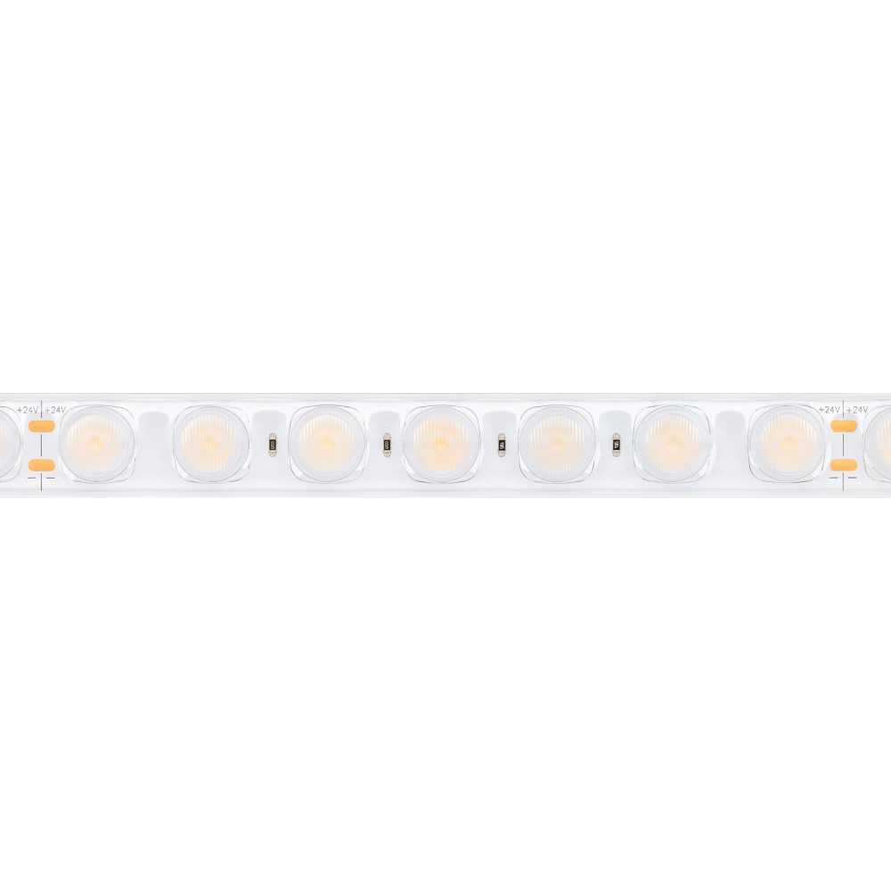Светодиодная гибкая лента Wall Washer, герметичная IP67. Светодиоды 2835, 42 шт/м (210 шт на 5м), белая плата, скотч 3М. Цвет свечения ТЕПЛЫЙ 3000К, направленная линза с углом 30°, индекс цветопередачи CRI>80. Питание 24 В, мощность 21 Вт/м (105 Вт на 5 м