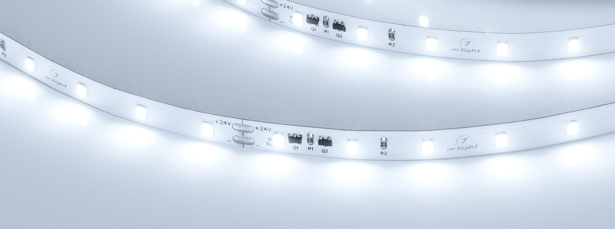 Светодиодная лента IC-A60, открытая IP20. Светодиоды 2835, 60 шт/м (600 шт на 10 м), белая плата, ширина 8 мм, скотч 3M. Цвет БЕЛЫЙ 6000 K, цветопередача CRI>80, угол 120°. Питание 24 В, мощность 4.8 Вт/м (48 Вт на 10 м). Размеры 10000x8x1.3 мм. Мин. отре