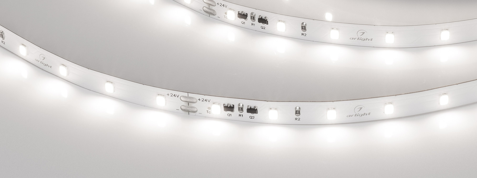 Лента IC-A60-8mm 24V Day5000 (4.8 W/m, IP20, 2835, 10m) 037955, Светодиодная лента IC-A60, открытая IP20. Светодиоды 2835, 60 шт/м (600 шт на 10 м), белая плата, ширина 8 мм, скотч 3M. Цвет ДНЕВНОЙ 5000 K, цветопередача CRI>80, угол 120°. Питание 24 В, мощность 4.8 Вт/м (48 Вт на 10 м). Размеры 10000x8x1.3 мм. Мин. от