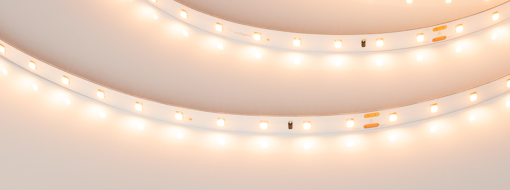 Лента IC-A60-10mm 24V Warm2400 (4.6 W/m, IP20, 2835, 30m) 028627(2), Стабилизированная лента LUX, подключение 30м в одну линию, светодиоды smd 2835, 60шт/м (1800шт на 30м), белая плата 10мм, скотч 3М. Цвет ТЁПЛЫЙ 2400K. Питание 24V, мощность 4.6 Вт/м (138 Вт на 30м), угол 120°, цветопередача CRI>85. Размеры 30000х10x1.7мм.