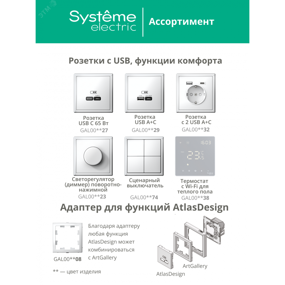 Рамка 1-м ArtGallery бел. SE GAL000101, Аксессуар для скрытого монтажа