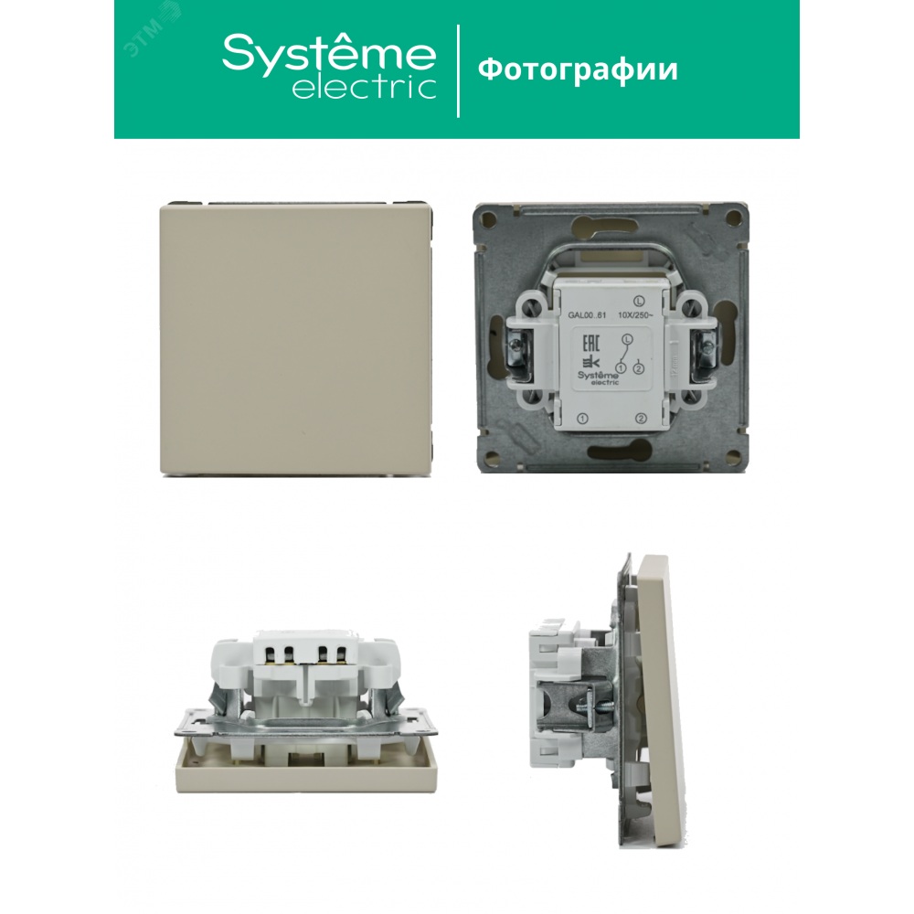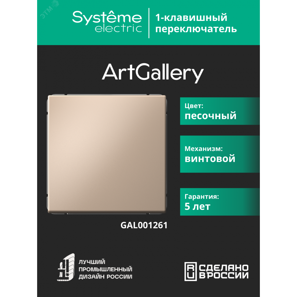 Механизм Systeme Electric серии ArtGallery в цвете песочный переключателя 1-клавишного подходит для сетей 250 В, на ток 10 А.