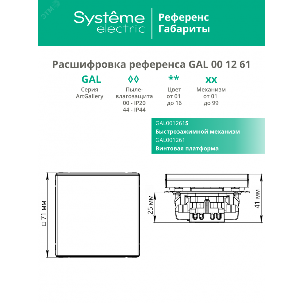 Описание Переключатель 1-кл. ArtGallery (сх. 6) 10AX механизм песочн. SE GAL001261