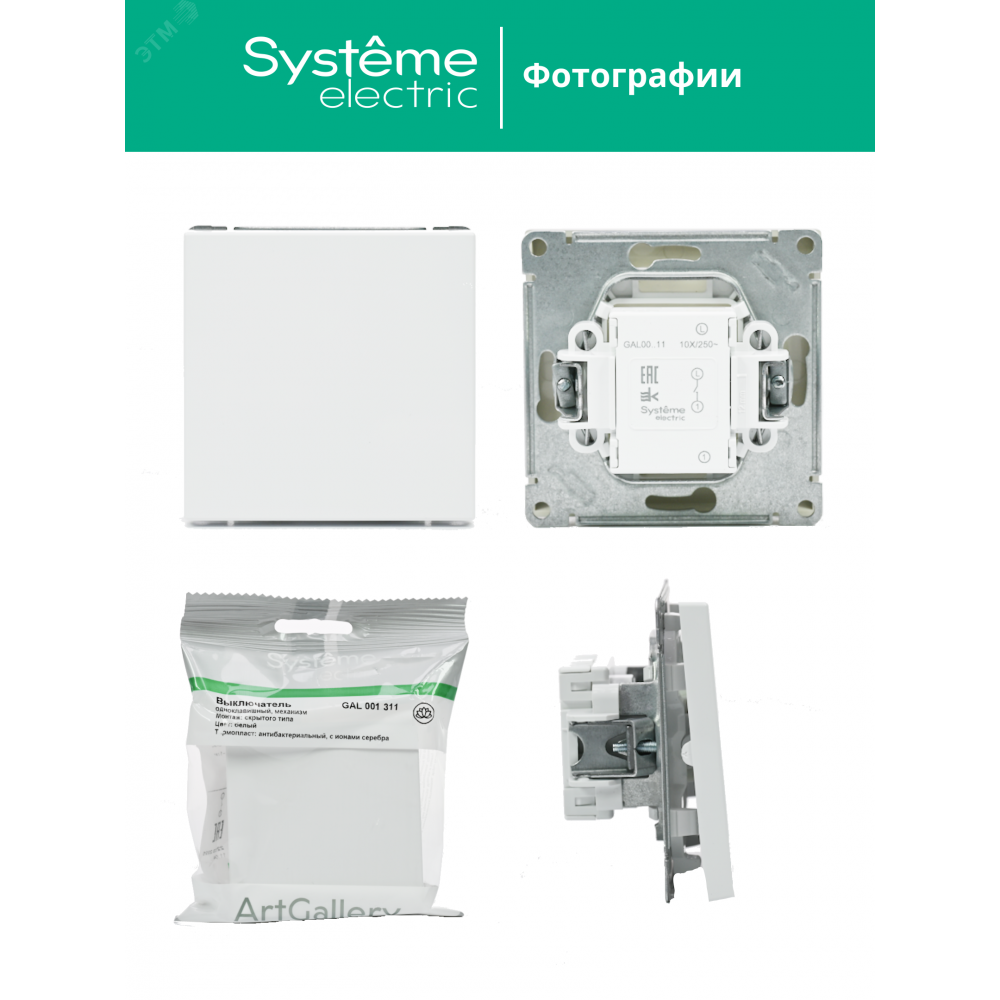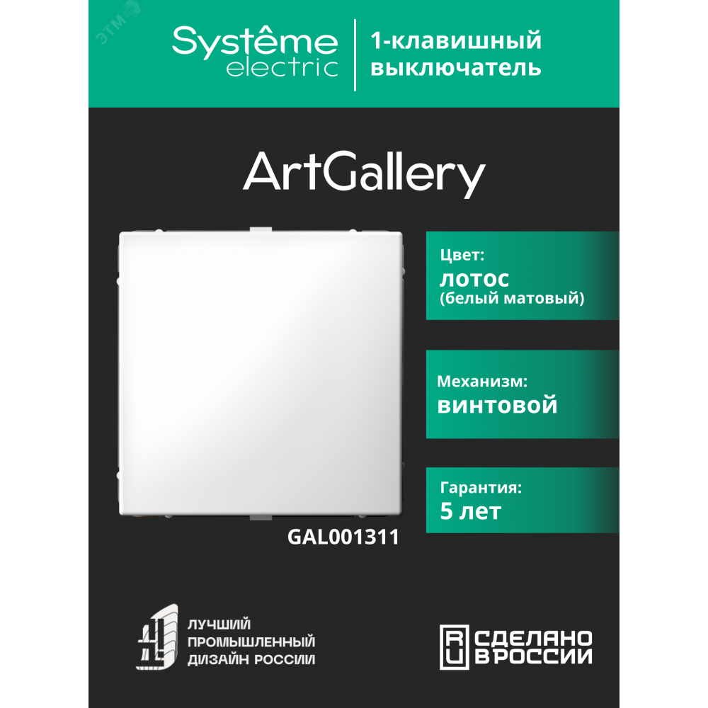 Механизм Systeme Electric серии ArtGallery в цвете лотос выключателя 1-клавишного подходит для сетей 250 В, на ток 10 А.