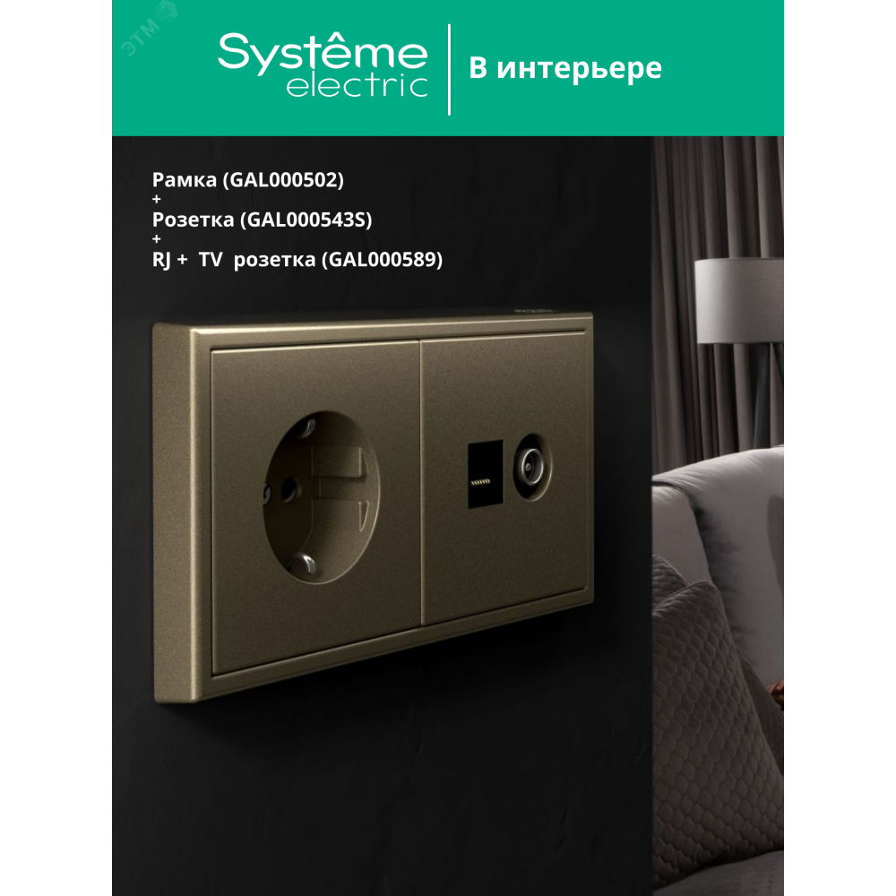 Рамка Systeme Electric серии ArtGallery в цвете шампань двухместная.