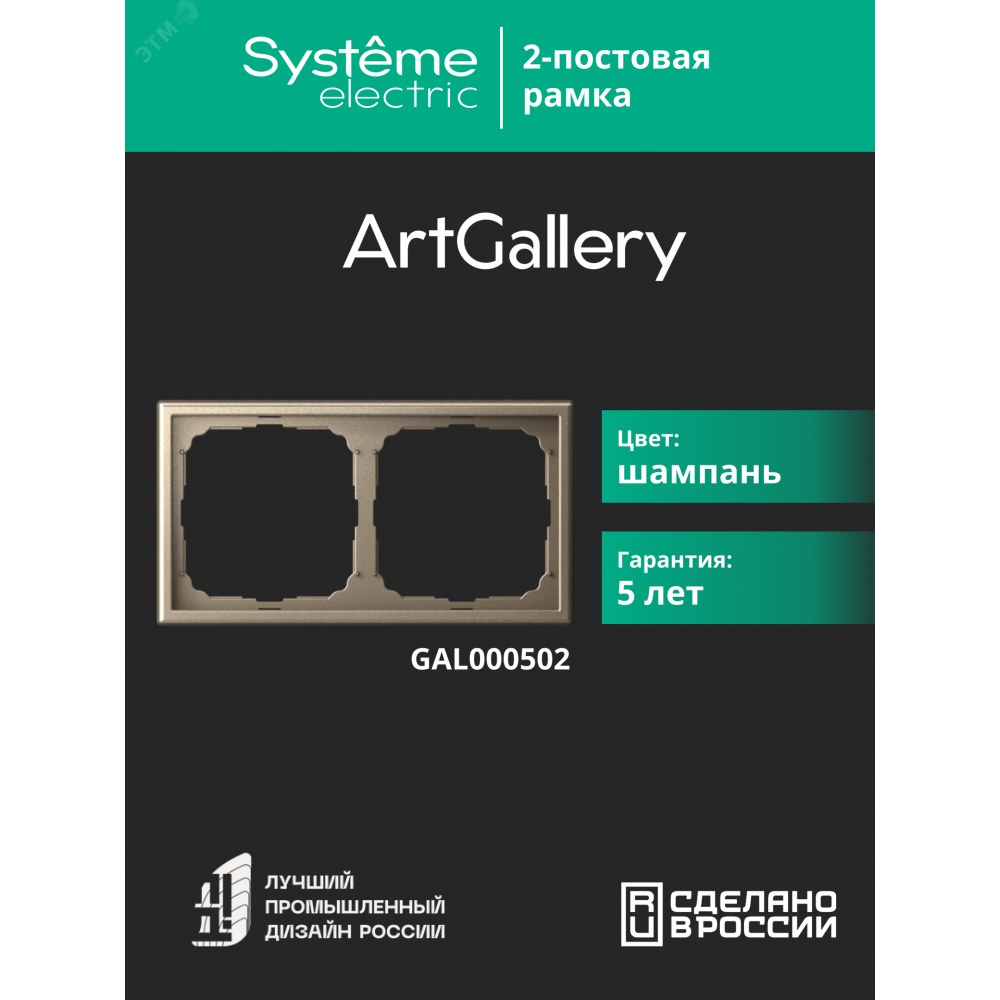 Рамка 2-м ArtGallery универс. шампань SE GAL000502, Аксессуар для скрытого монтажа
