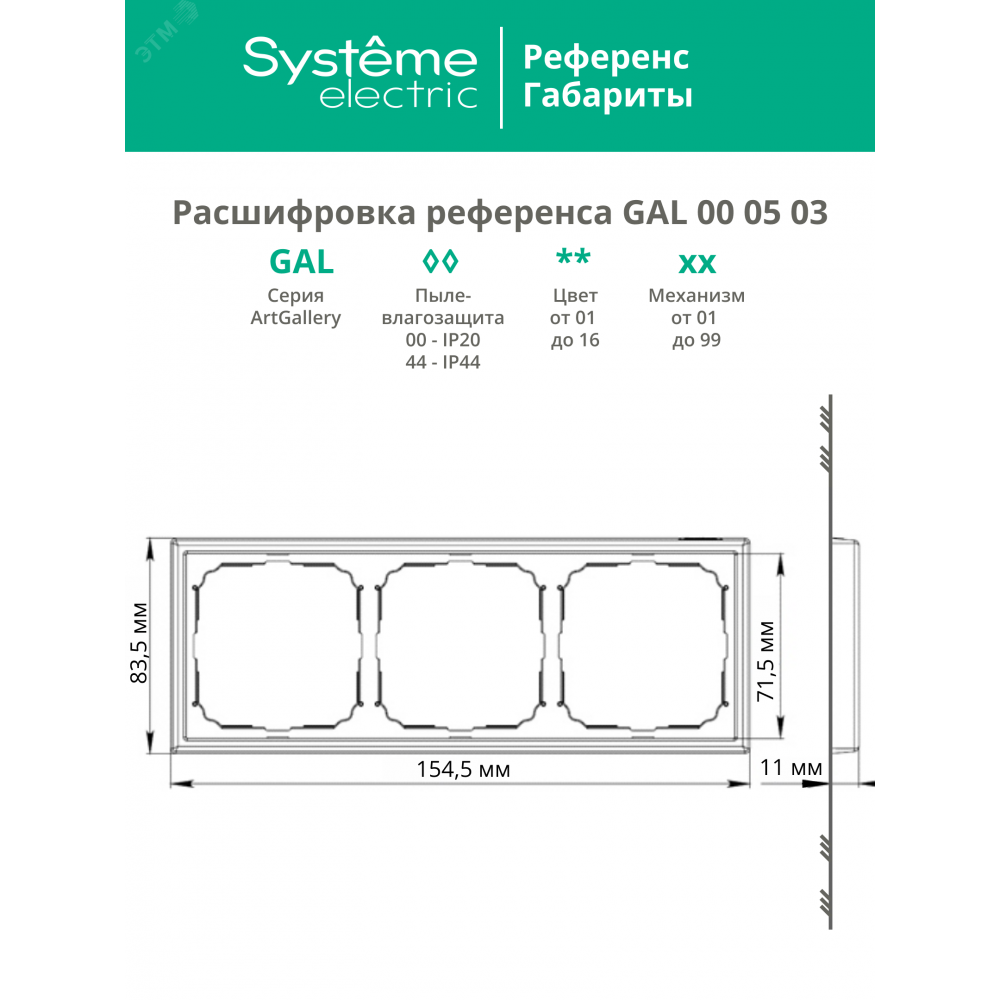 Рамка 3-м ArtGallery универс. шампань SE GAL000503, Аксессуар для скрытого монтажа