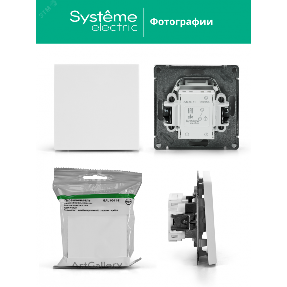 Механизм Systeme Electric серии ArtGallery в цвете белый переключателя 1-клавишного подходит для сетей 250 В, на ток 10 А.