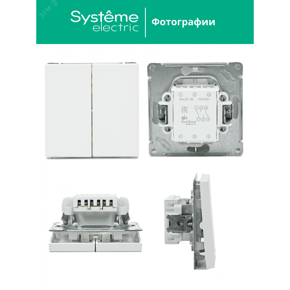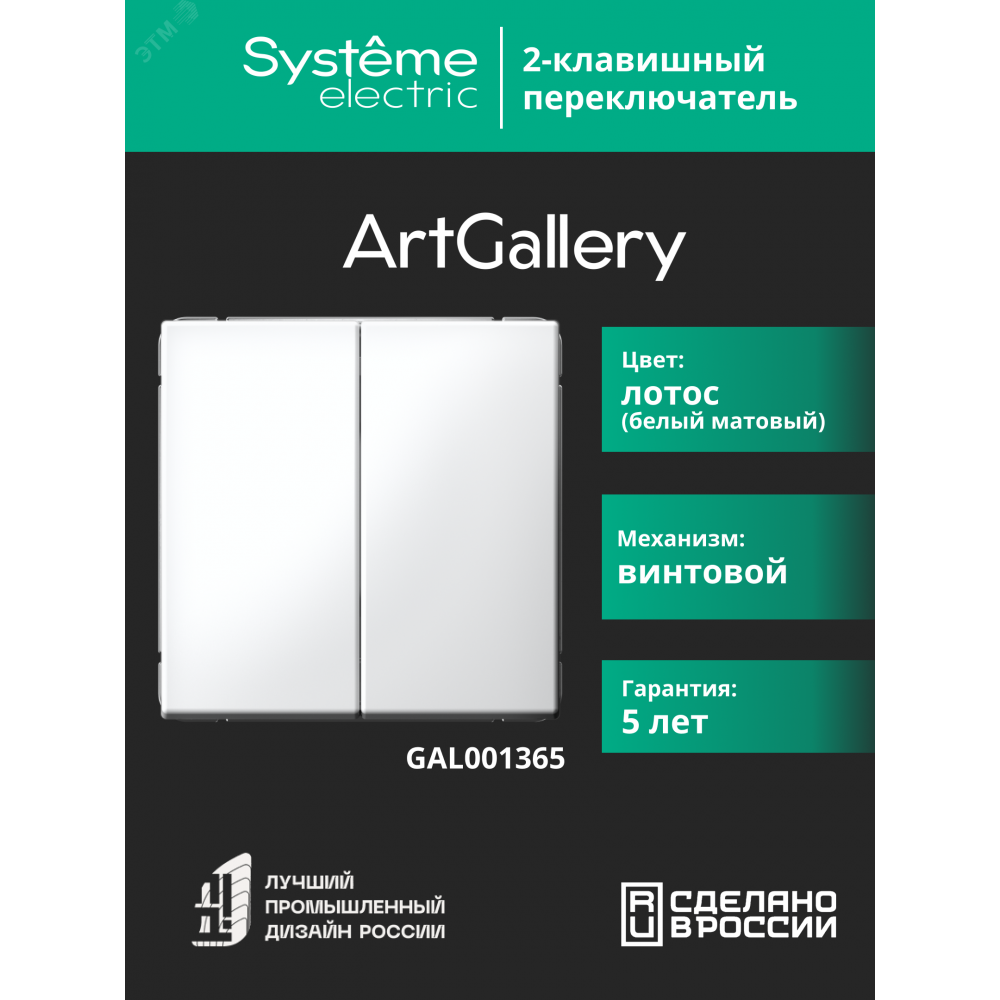 Механизм Systeme Electric серии ArtGallery в цвете лотос переключателя 2-клавишного подходит для сетей 250 В, на ток 10 А.