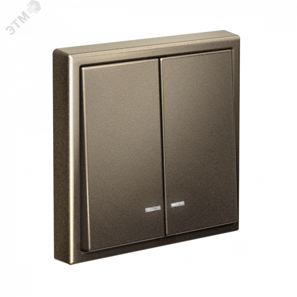 Механизм Systeme Electric серии ArtGallery в цвете мокко выключателя 2-клавишного c подсветкой подходит для сетей 250 В, на ток 10 А.