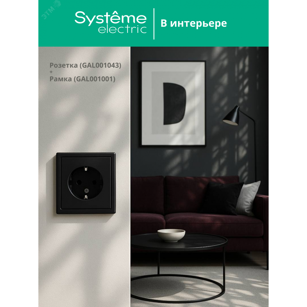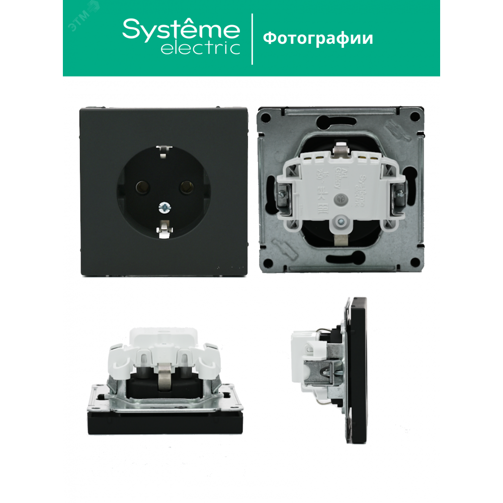 Механизм Systeme Electric серии ArtGallery в цвете карбон розетки одинарной с заземлением и без шторок подходит для сетей 250 В, на ток 16 А.