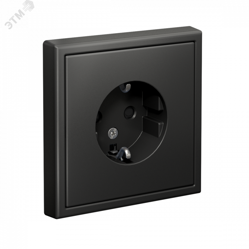 Механизм Systeme Electric серии ArtGallery в цвете базальт розетки одинарной с заземлением и шторками подходит для сетей 250 В, на ток 16 А.