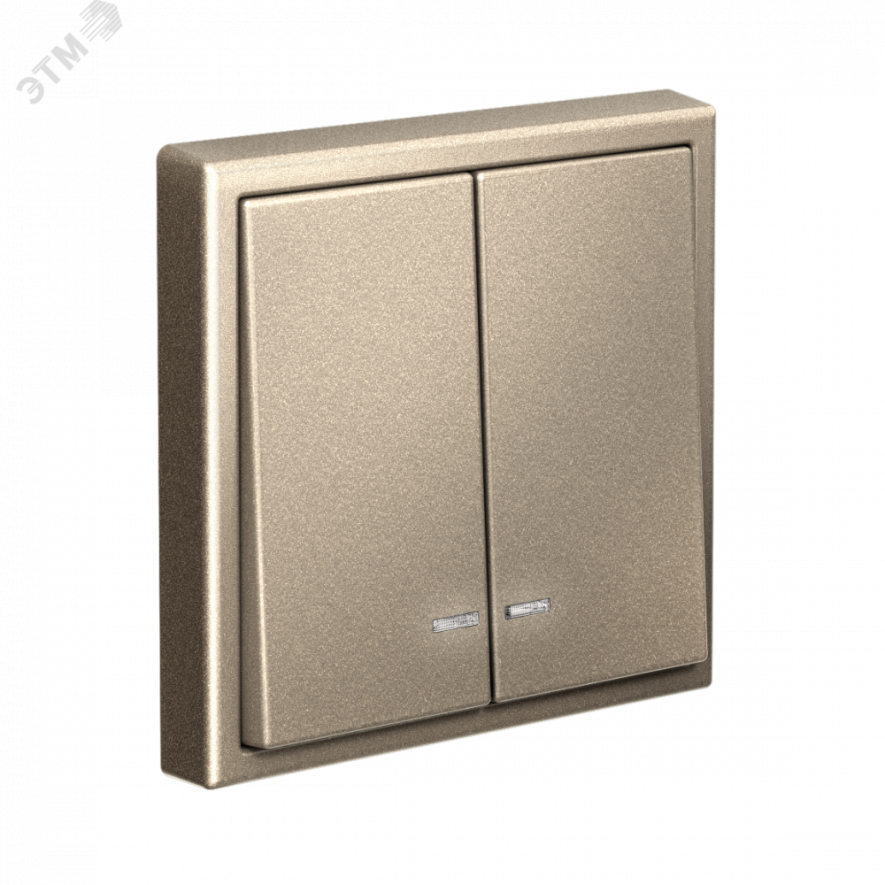 Механизм Systeme Electric серии ArtGallery в цвете шампань выключателя 2-клавишного c подсветкой подходит для сетей 250 В, на ток 10 А.