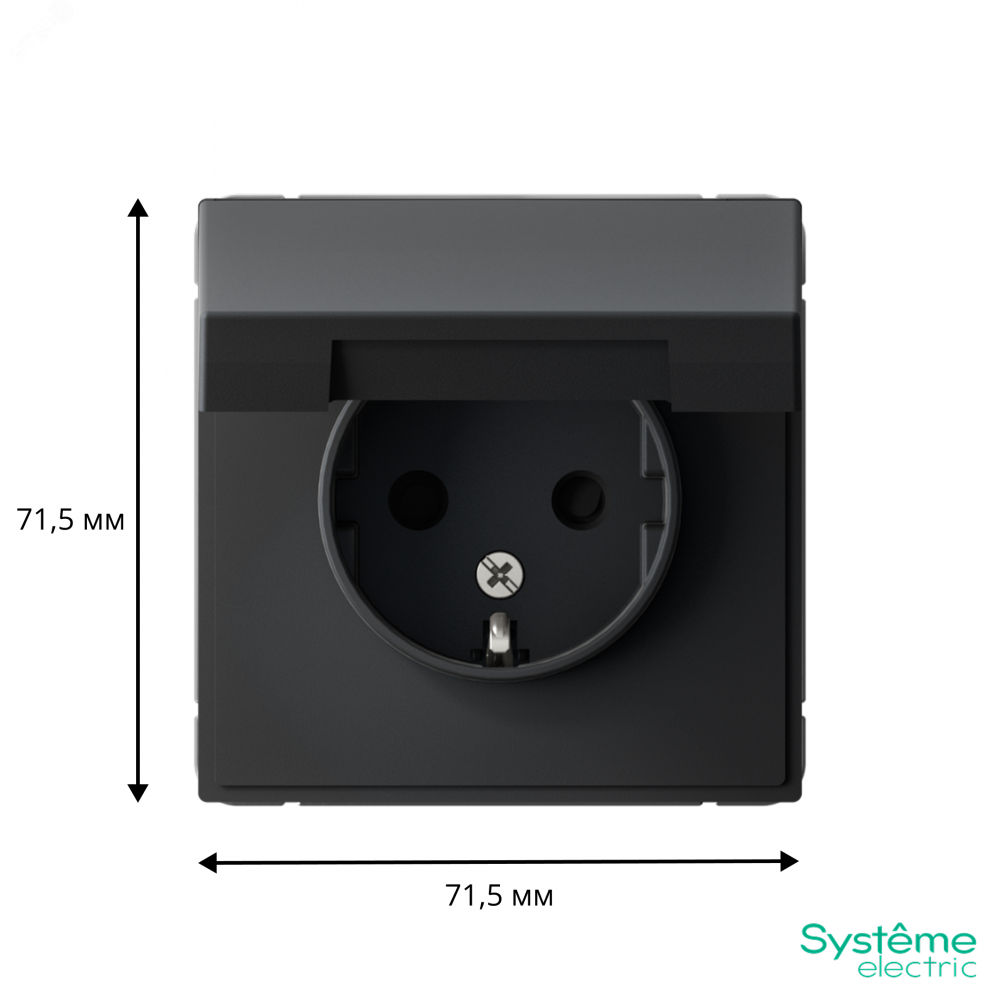 Механизм Systeme Electric серии ArtGallery в цвете карбон розетки одинарной с заземлением, шторками и крышкой подходит для сетей 250 В, на ток 16 А.