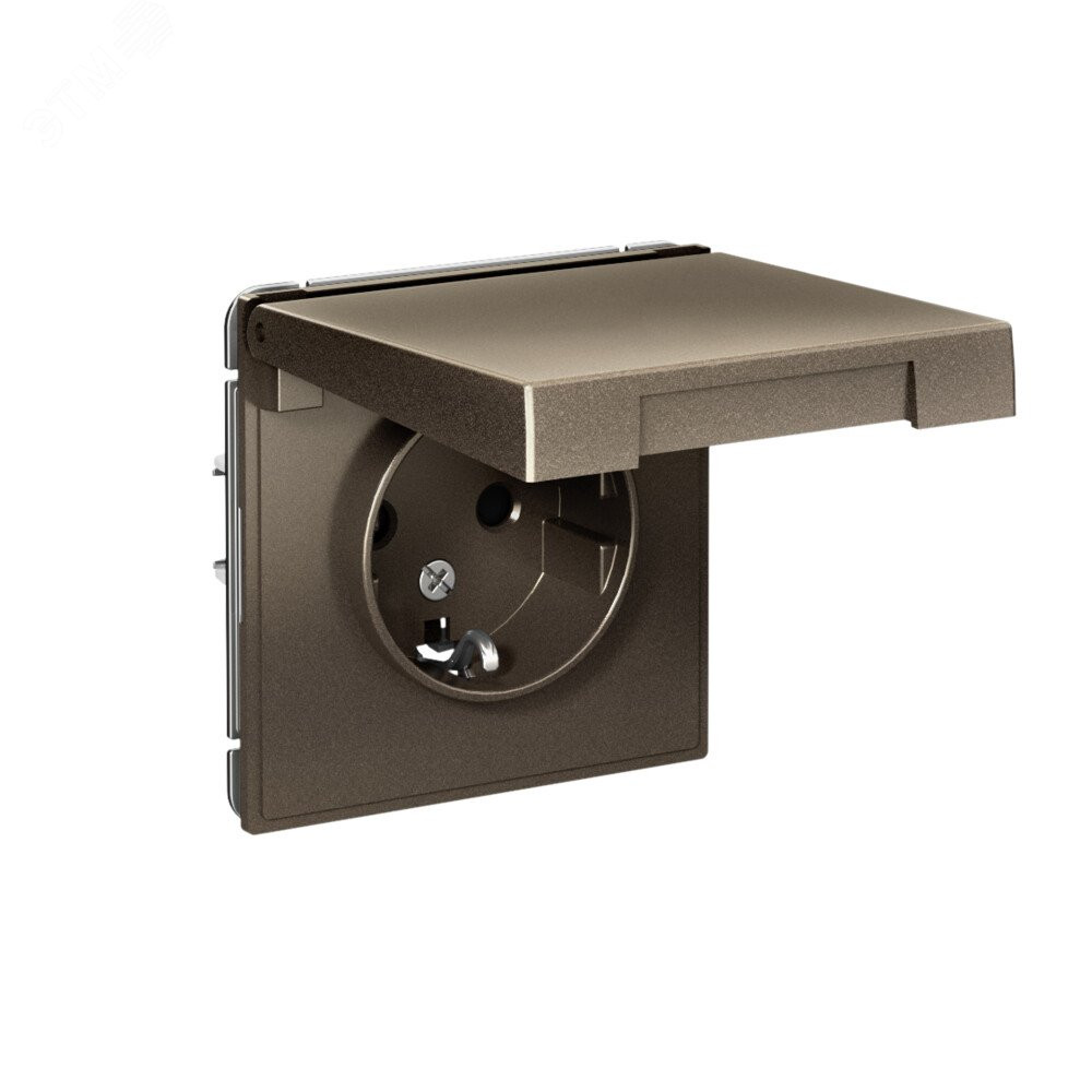 Описание Розетка ArtGallery 16А IP20 с заземл. защ. шторки с крышкой механизм мокко SE GAL000646