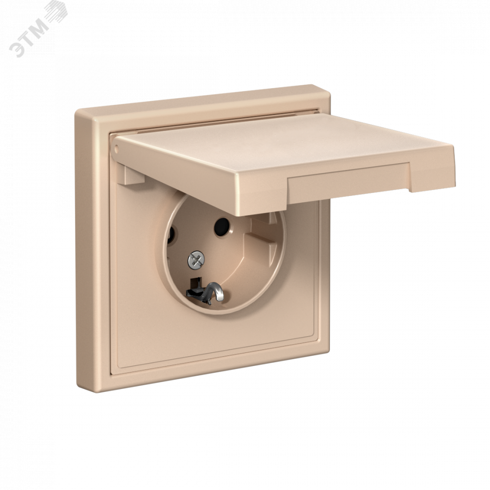 Механизм Systeme Electric серии ArtGallery в цвете песочный розетки одинарной с заземлением, шторками и крышкой подходит для сетей 250 В, на ток 16 А.
