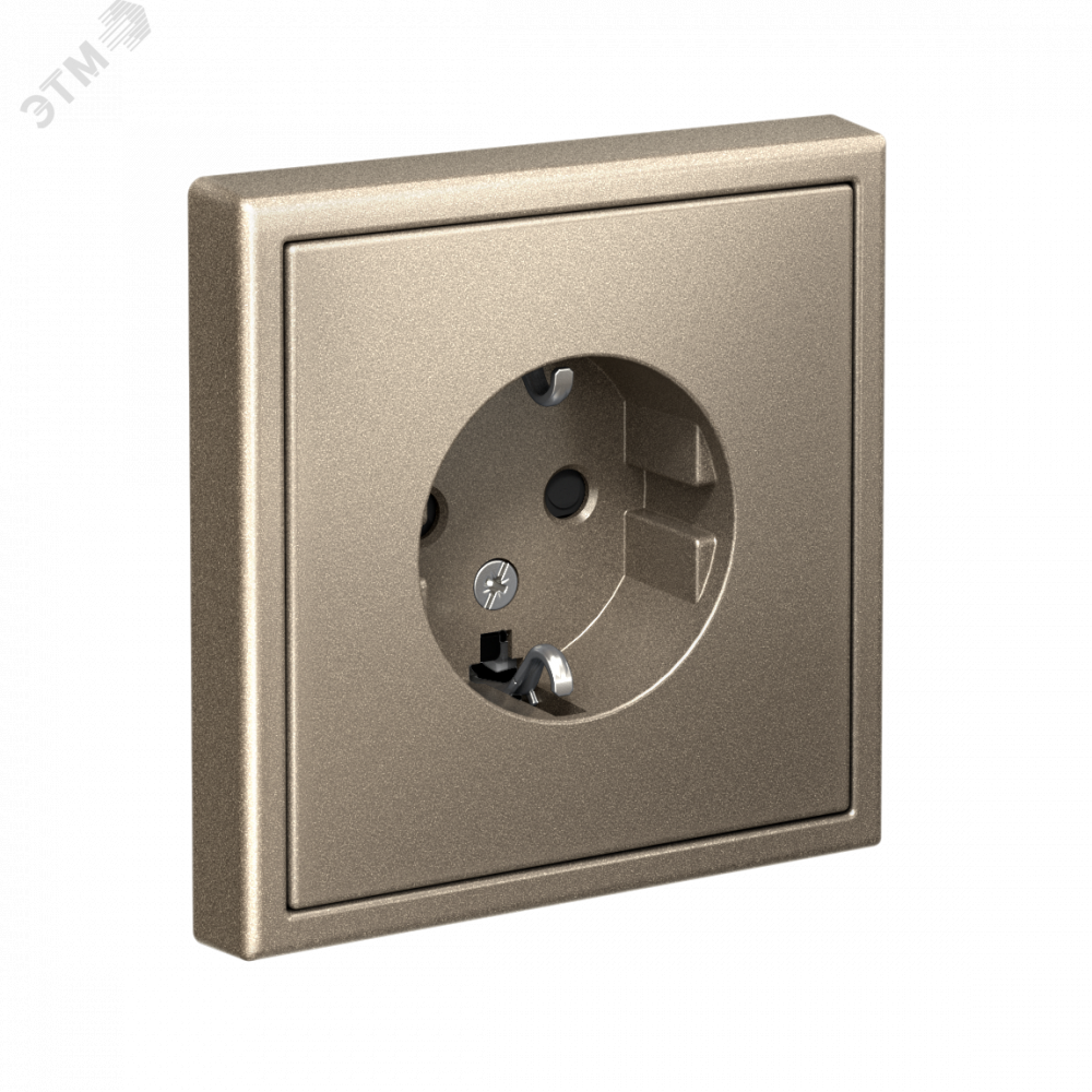 Механизм Systeme Electric серии ArtGallery в цвете шампань розетки одинарной с заземлением и шторками подходит для сетей 250 В, на ток 16 А.