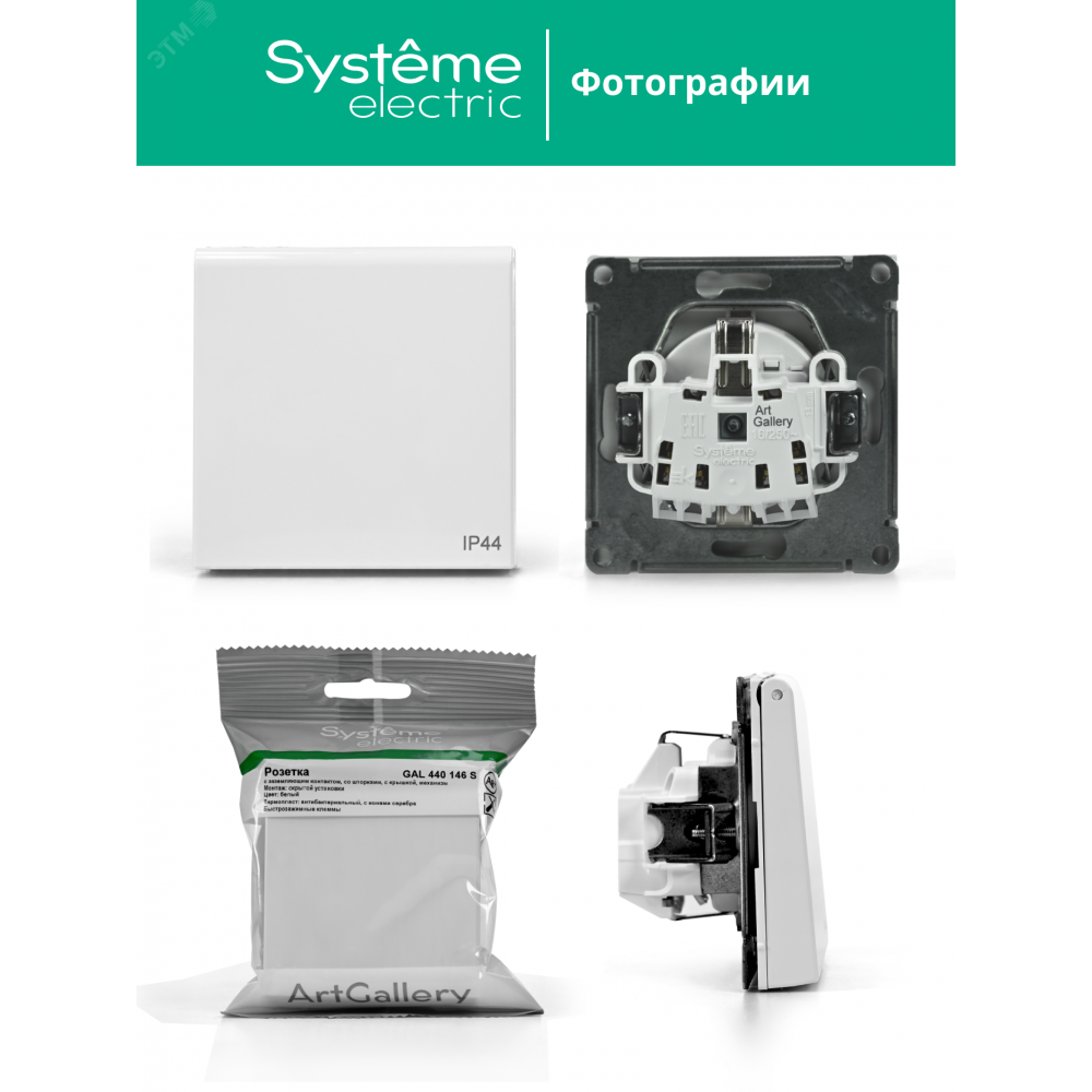 Описание Розетка ArtGallery 16А IP44 с заземл. защ. шторки с крышкой механизм бел. SE GAL440146
