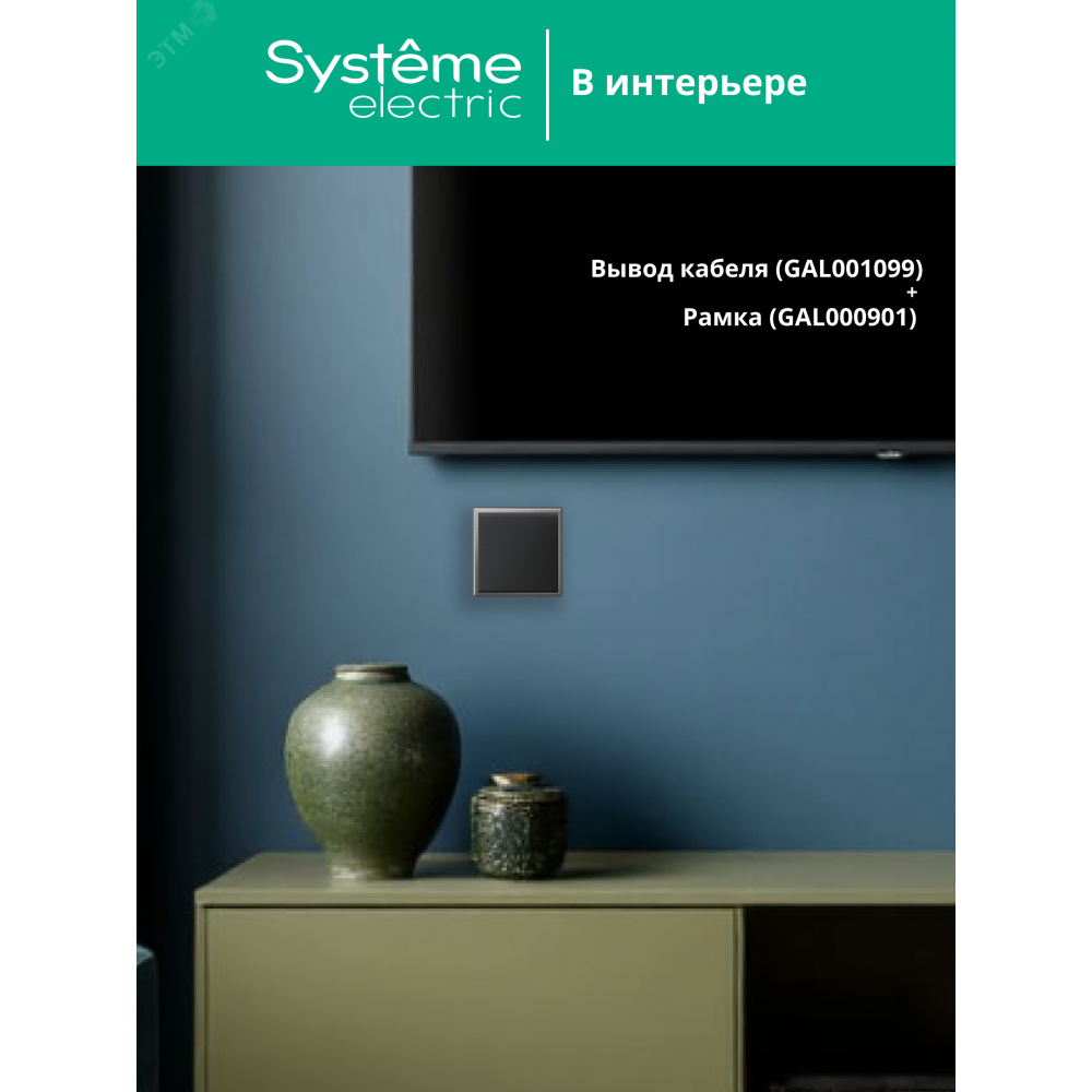 Вывод кабеля Systeme Electric серии ArtGallery в цвете карбон.