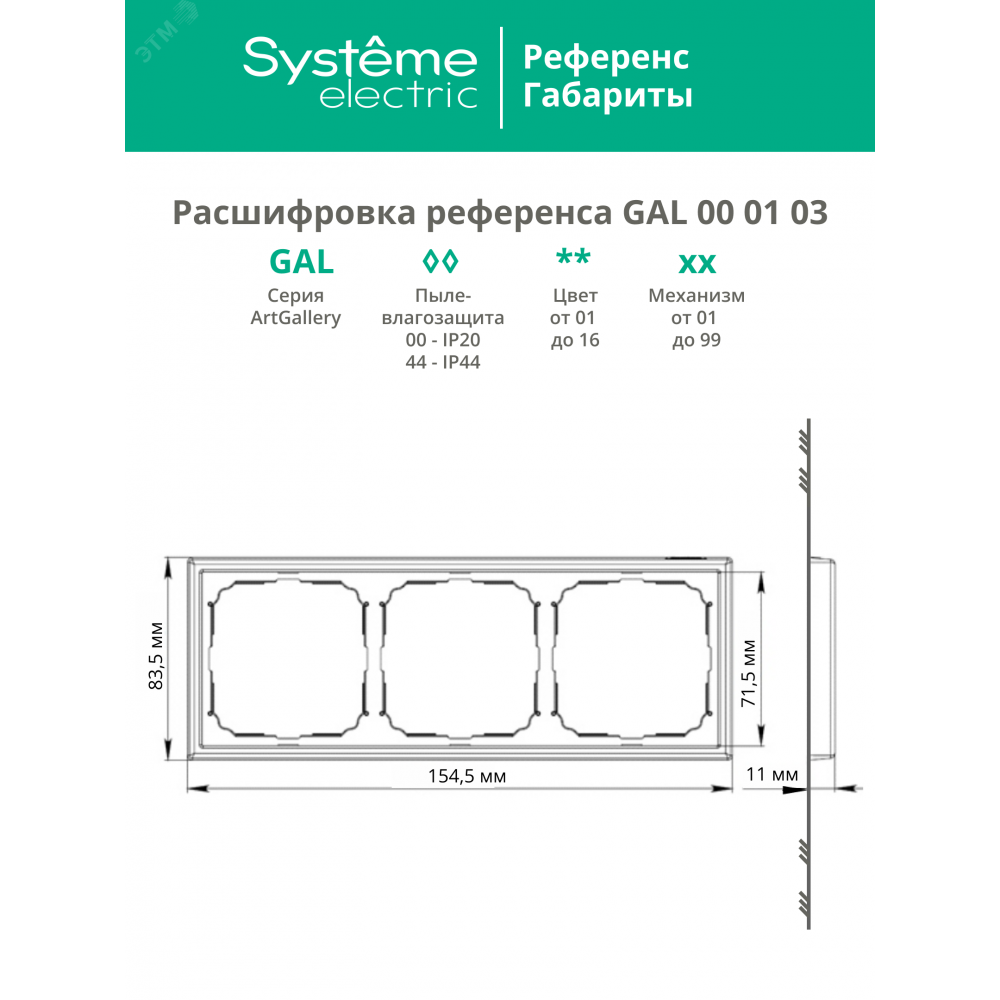 Рамка 3-м ArtGallery универс. бел. SE GAL000103, Аксессуар для скрытого монтажа