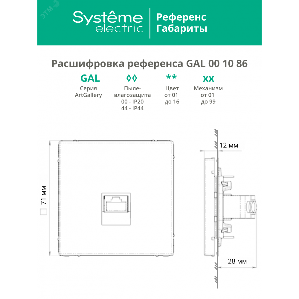 Механизм Systeme Electric серии ArtGallery в цвете карбон розетки компьютерной с разъёмом RJ45 категории 6А предназначен для удобного и быстрого подключения вашего компьютера к локальной вычислительной сети.