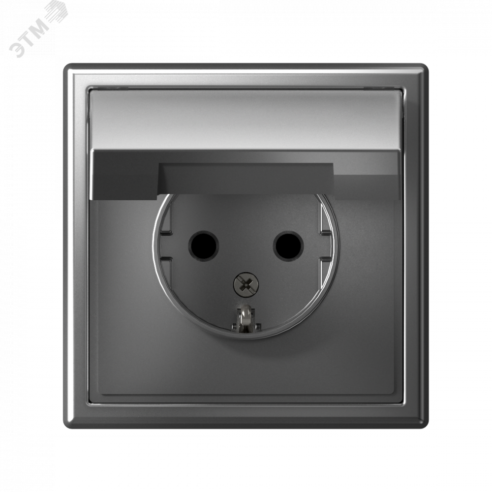 Механизм Systeme Electric серии ArtGallery в цвете сталь розетки одинарной с заземлением, шторками и крышкой подходит для сетей 250 В, на ток 16 А.