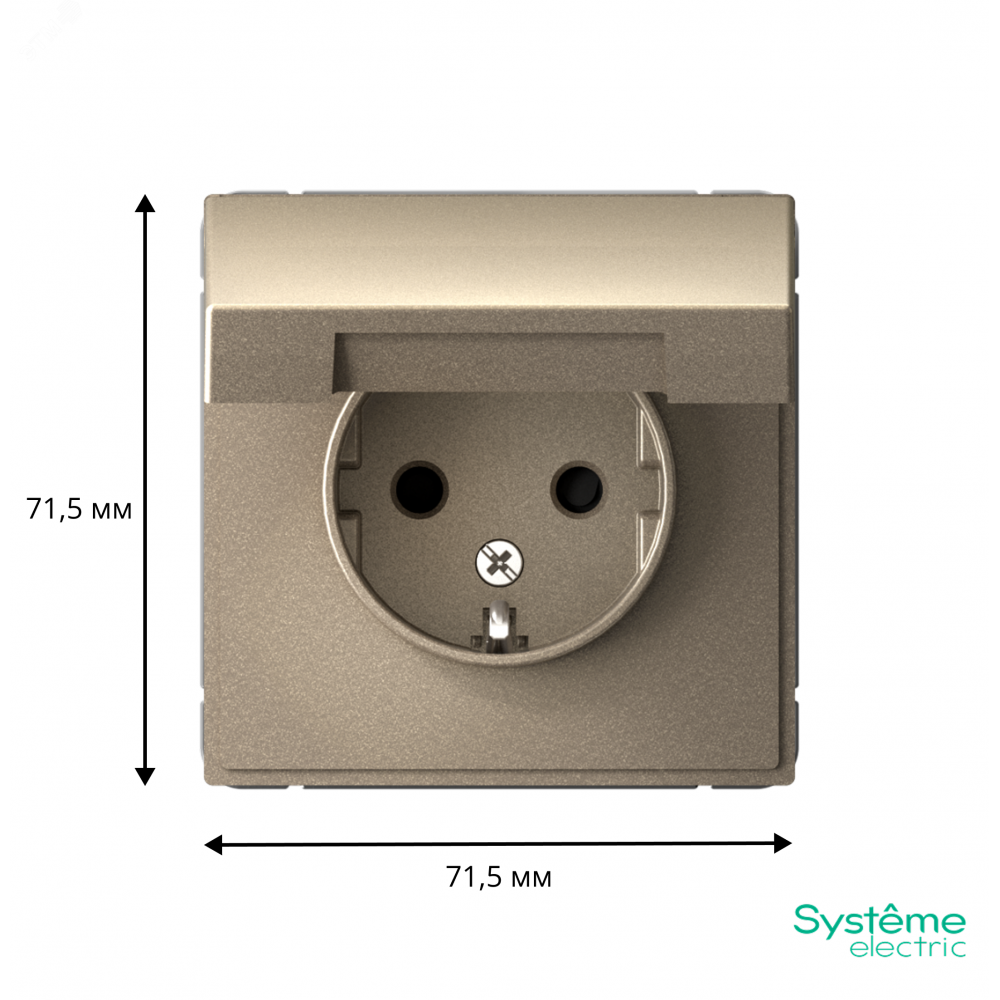 Механизм Systeme Electric серии ArtGallery в цвете шампань розетки одинарной с заземлением, шторками и крышкой подходит для сетей 250 В, на ток 16 А.