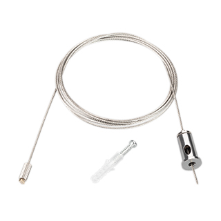 стальной гибкий тросик 2м с фиксатором для подвешивания профиля ROUND-D20. Зажимной фиксатор d=16мм х 32мм. В комплекте один тросик, дюбель, шуруп.