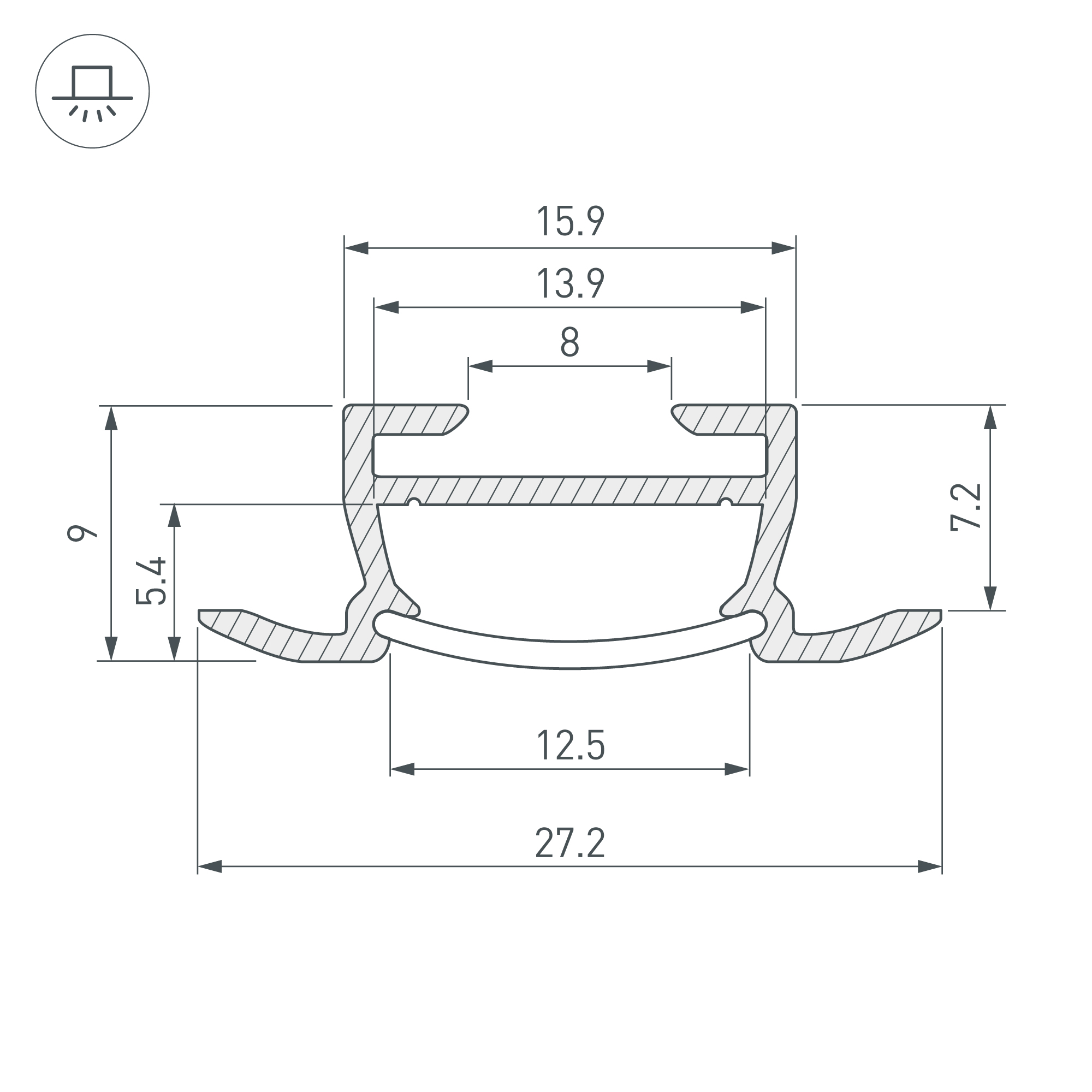 Алюминиевый анодированный профиль для светодиодных лент и линеек. Габаритные размеры (LхWхH): 2000x27,2x9 мм. Ширина площадки для ленты 13,9 мм. Установка в паз шириной 16 мм. Экраны, заглушки и другие аксессуары приобретаются отдельно. Цена за 1 метр.