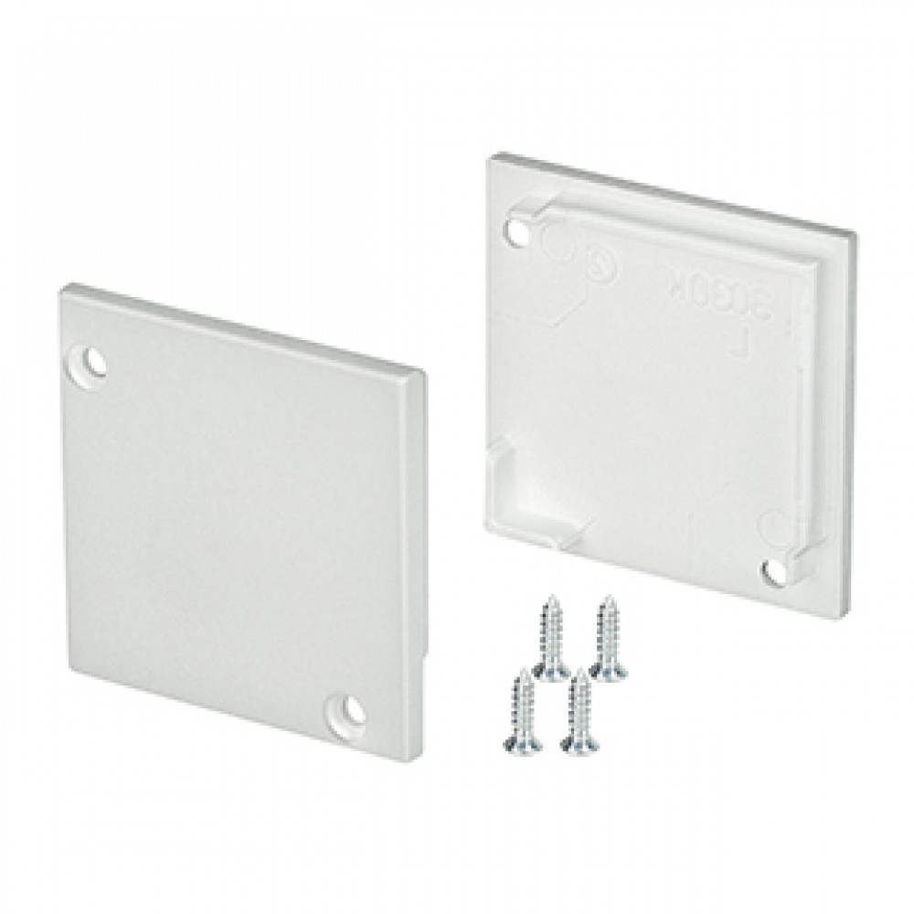 Пара заглушек (без отверстия) для профиля SL-KANT-H30 с квадратным экраном. В комплекте 2 заглушки, 4 шурупа.