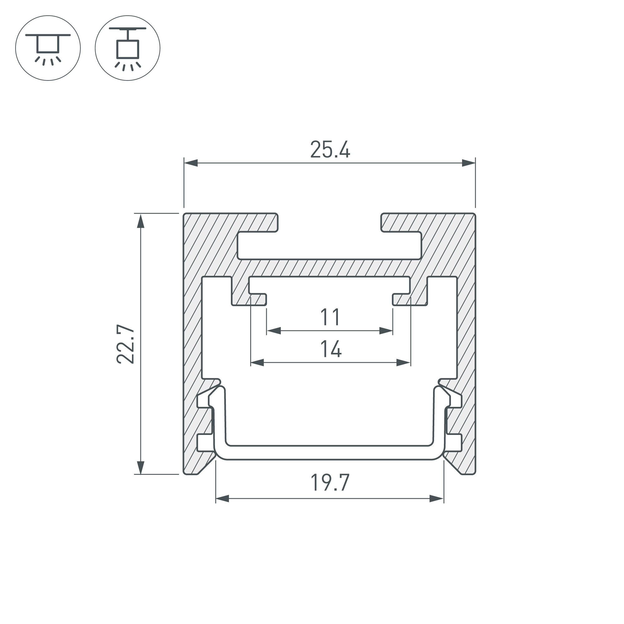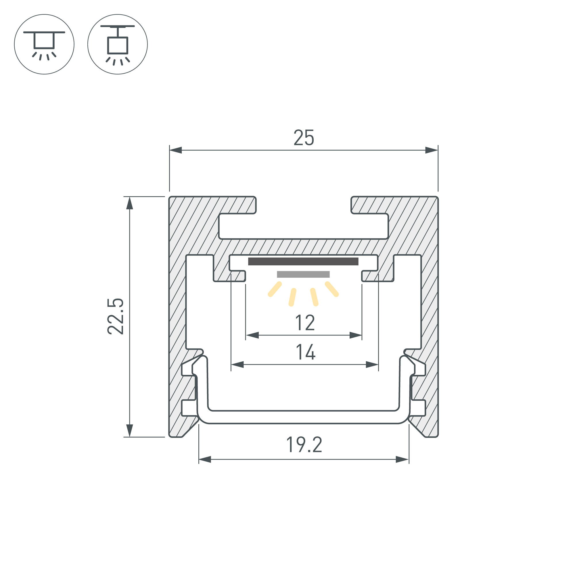 Алюминиевый профиль для светодиодных лент и линеек. Цвет - белый RAL9003 (порошковая окраска). Габаритные размеры (LхWхH): 2500x25x22 мм. Ширина площадки для ленты 12 мм. Экраны, заглушки и другие аксессуары приобретаются отдельно. Цена за 1 метр.