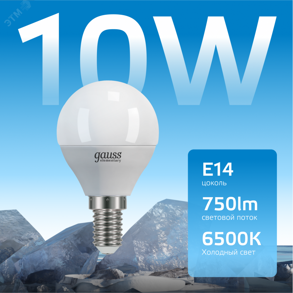 Описание Лампа Elementary Шар 10W 750lm 6500K Е14 LED 1/10/100 53130