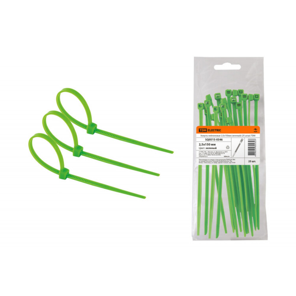 Описание Хомуты нейлоновые 2,5х150мм (зеленый) (25 штук) SQ0515-0346
