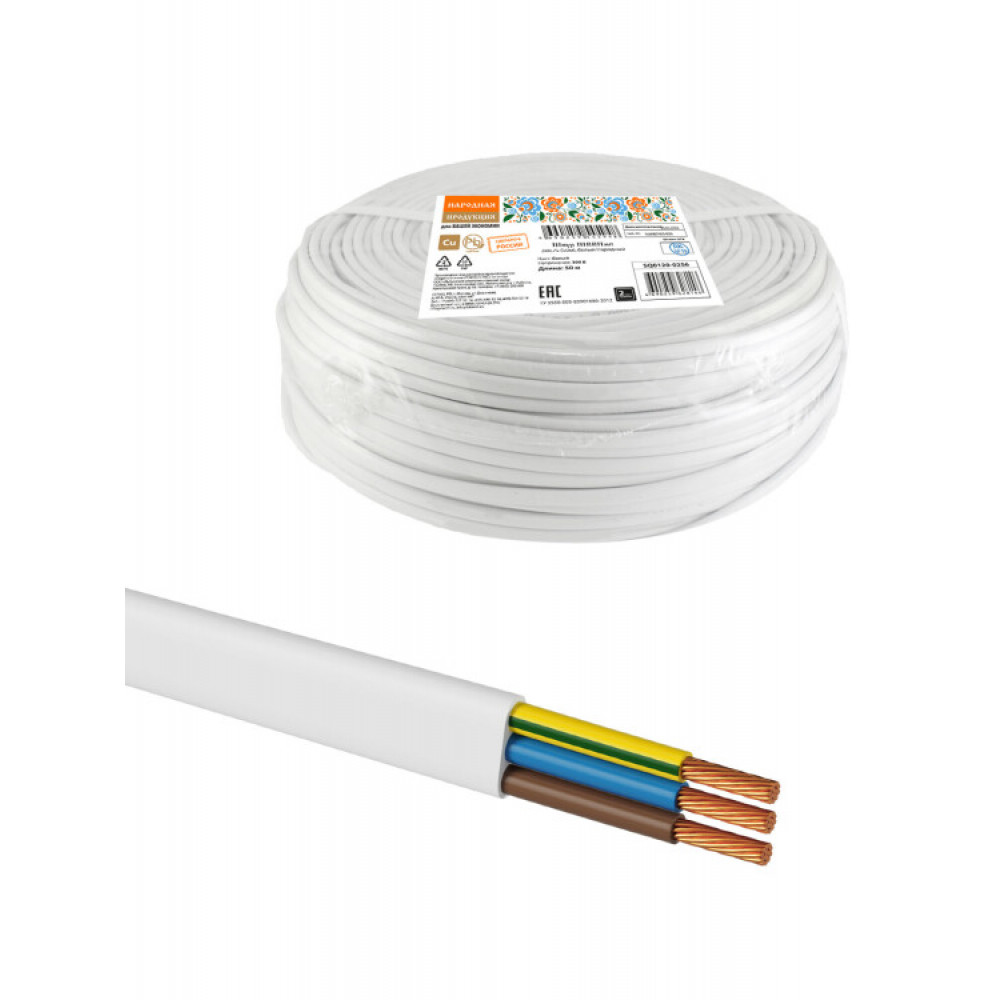 Шнур ШВВПмб 3х0,75 (50м), белый Народный SQ0120-0256, Кабель и провод силовой гибкий