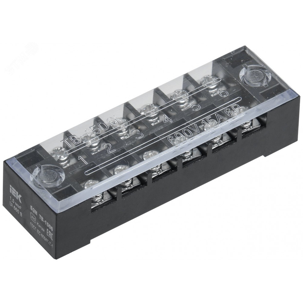 Блок зажимов БЗН ТВ-1506 1,5 мм2 15А 6 пар YZN41-06-001-K02, Блок клеммный и нулевая шина