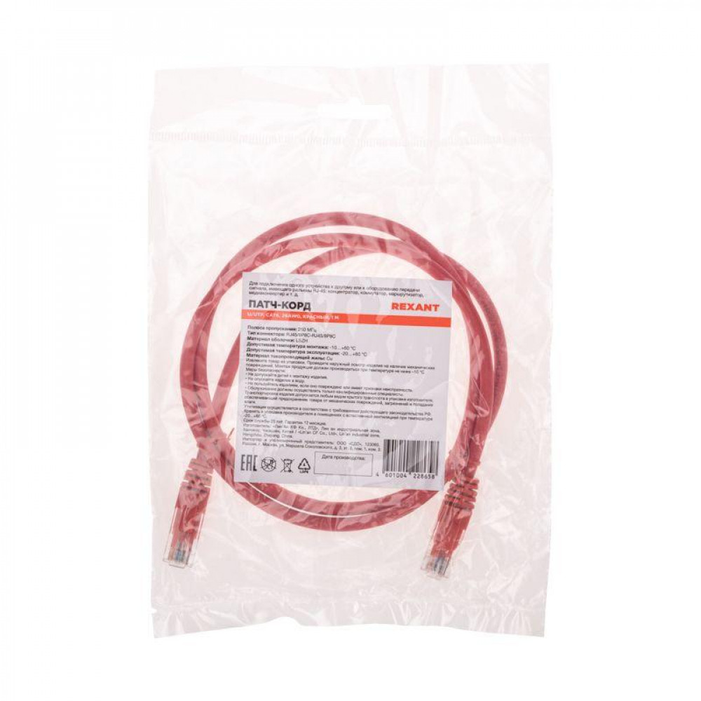 Патч-корд U/UTP CAT 6 RJ45-RJ45 26AWG LSZH красн. 1м 02-0293-1, Кабель и провод для телефонии и передачи данных