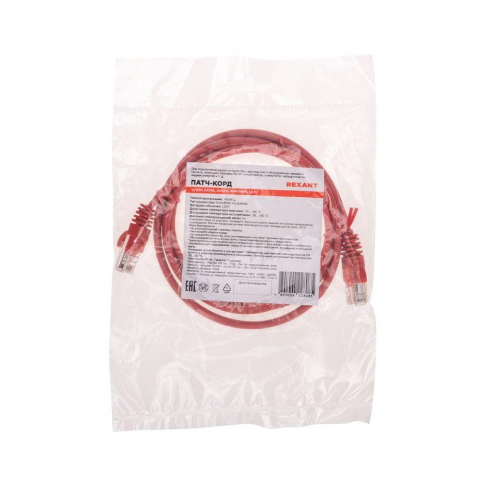 Патч-корд U/UTP CAT 5e RJ45-RJ45 26AWG LSZH красн. 1.5м 02-0103-105, Кабель и провод для телефонии и передачи данных