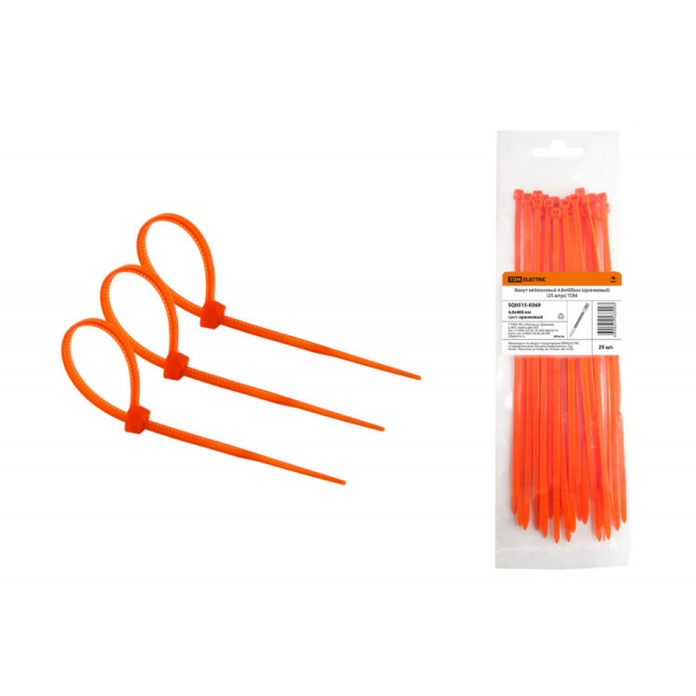 Описание Хомут нейлоновый 4.8х400мм (оранжевый) (25 штук) SQ0515-0369