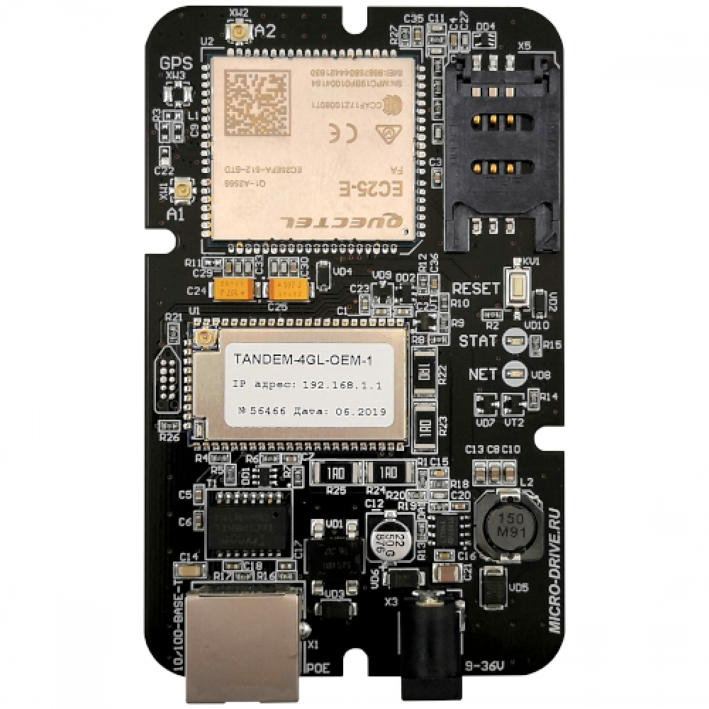Встраиваемый LTE (Cat.4) модуль (3G\4G модем, WiFi роутер и POE), количество SIM-карт: 1, количество LAN 1, интерфейсы Ethernet, напряжение питания DC: 9В-36В (штырьковый); PoE-B (24В-36В), 2 Wi-Fi антенны в комплекте