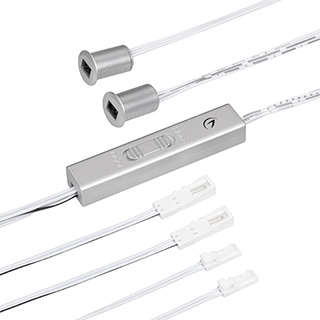 Выключатель для светодиодной ленты 12-24 В. В комплекте 2 датчика. Питание/рабочее напряжение DC 12-24 В, максимальный ток 4 A на канал, 1 канал, максимальная мощность 48-96 Вт. Реагирует на открывание дверей или движение рукой