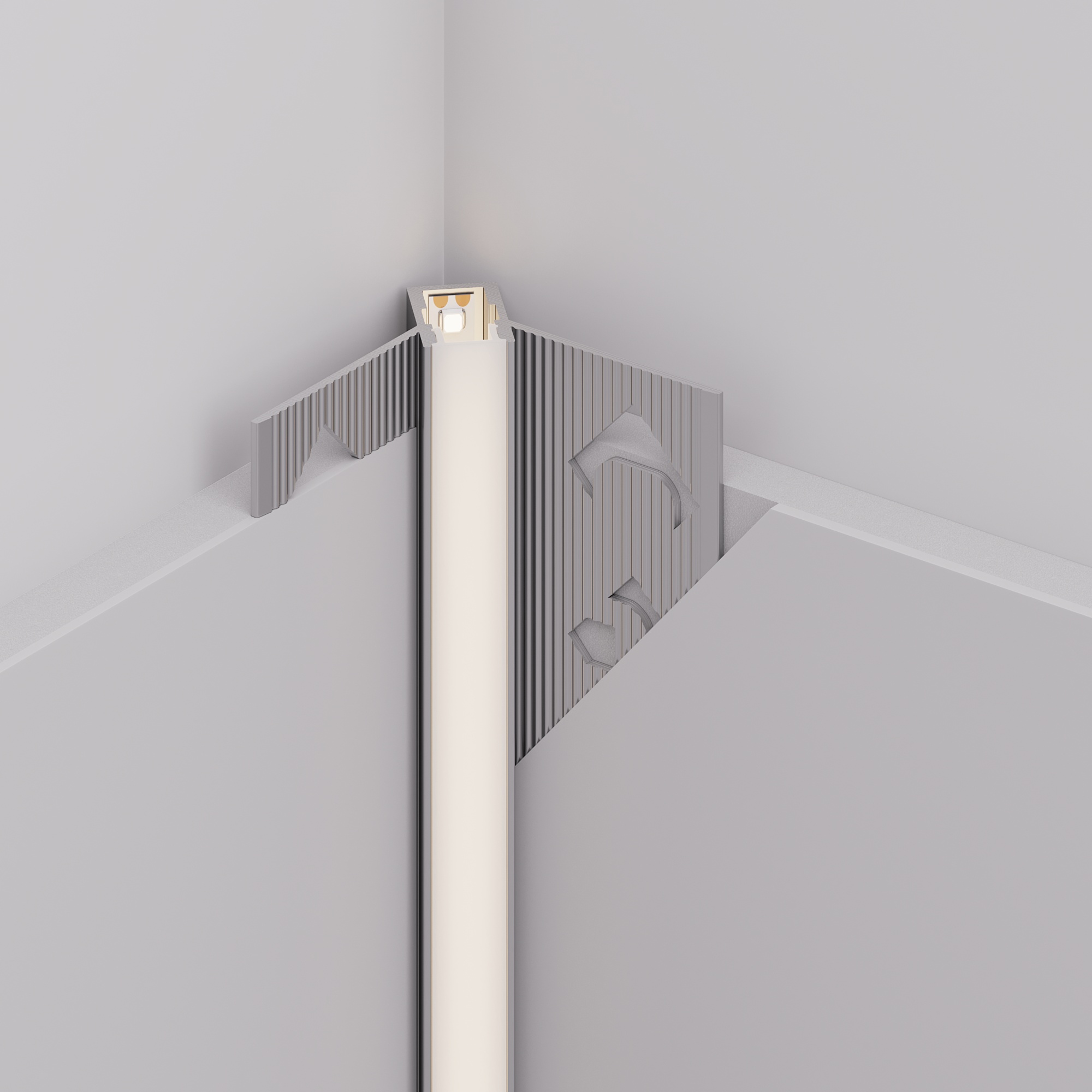 Алюминиевый анодированный угловой профиль для светодиодных лент и линеек, под строительную отделку или плитку. Фиксируется при помощи строительной смеси. Декоративная контурная подсветка внутренних углов стен и конструкций