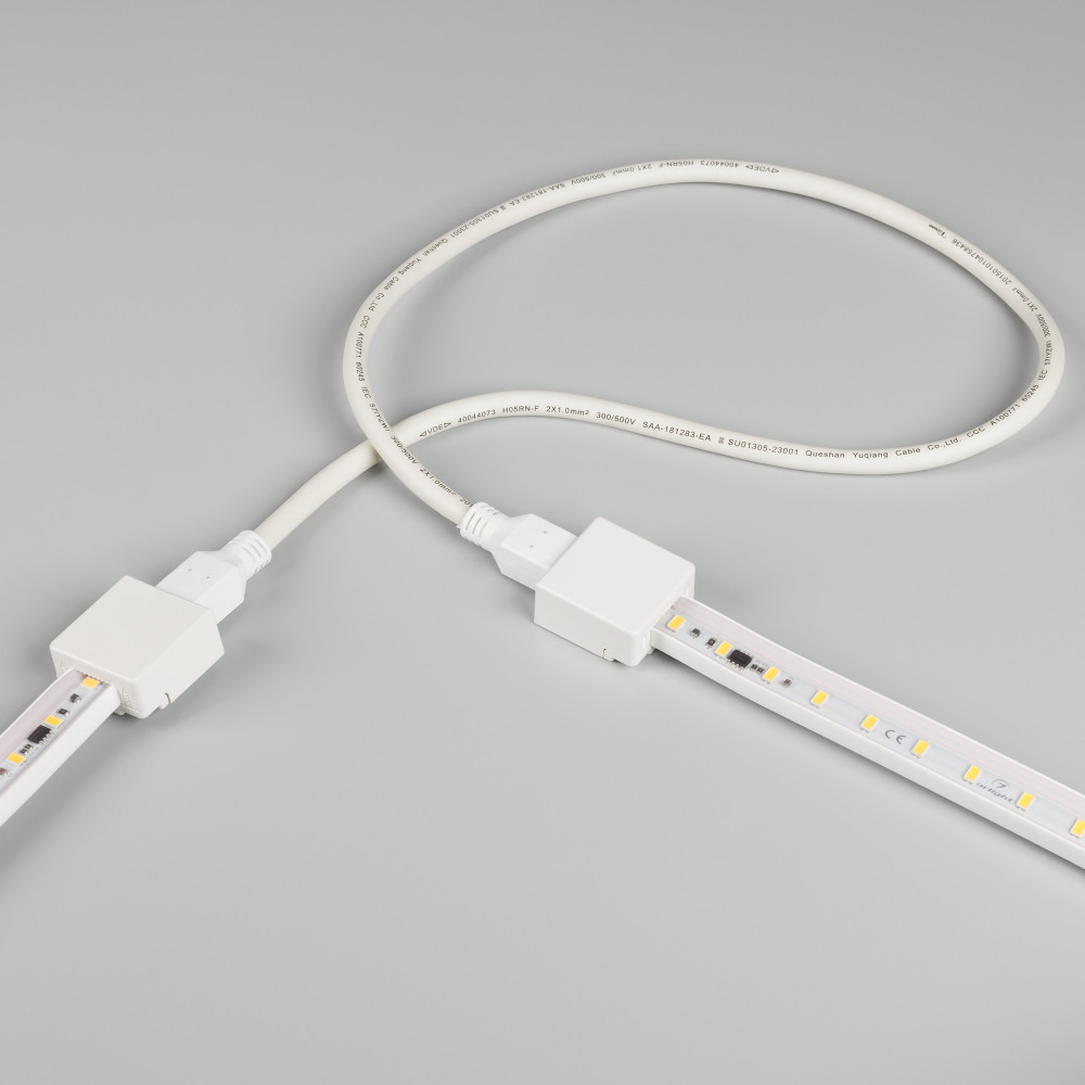 Коннектор соединительный с проводом 600мм для соединения между собой 2-х светодиодных лент ARL-50000PV, тип WP2. Провод 600мм, 2х1ммх. Максимальный допустимый ток 3А. Цена за 1шт.